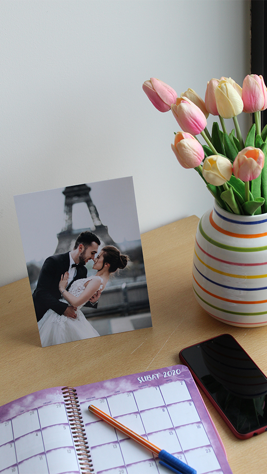 Ayaklı foto, herhangi bir çerçeveye gerek kalmadan fotoğraflarınızı sergileme imkanı sağlar. Fuji mat fotoğraf kağıdına Fuji fotoğraf baskı makinesinde basılarak hazırlanır.